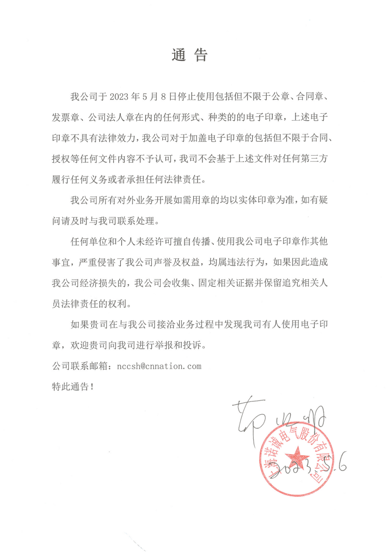 关于禁止使用电子印章通告