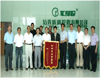 上海世博会局长一行亲临信义玻璃授“红新亮妆中国馆”锦旗
