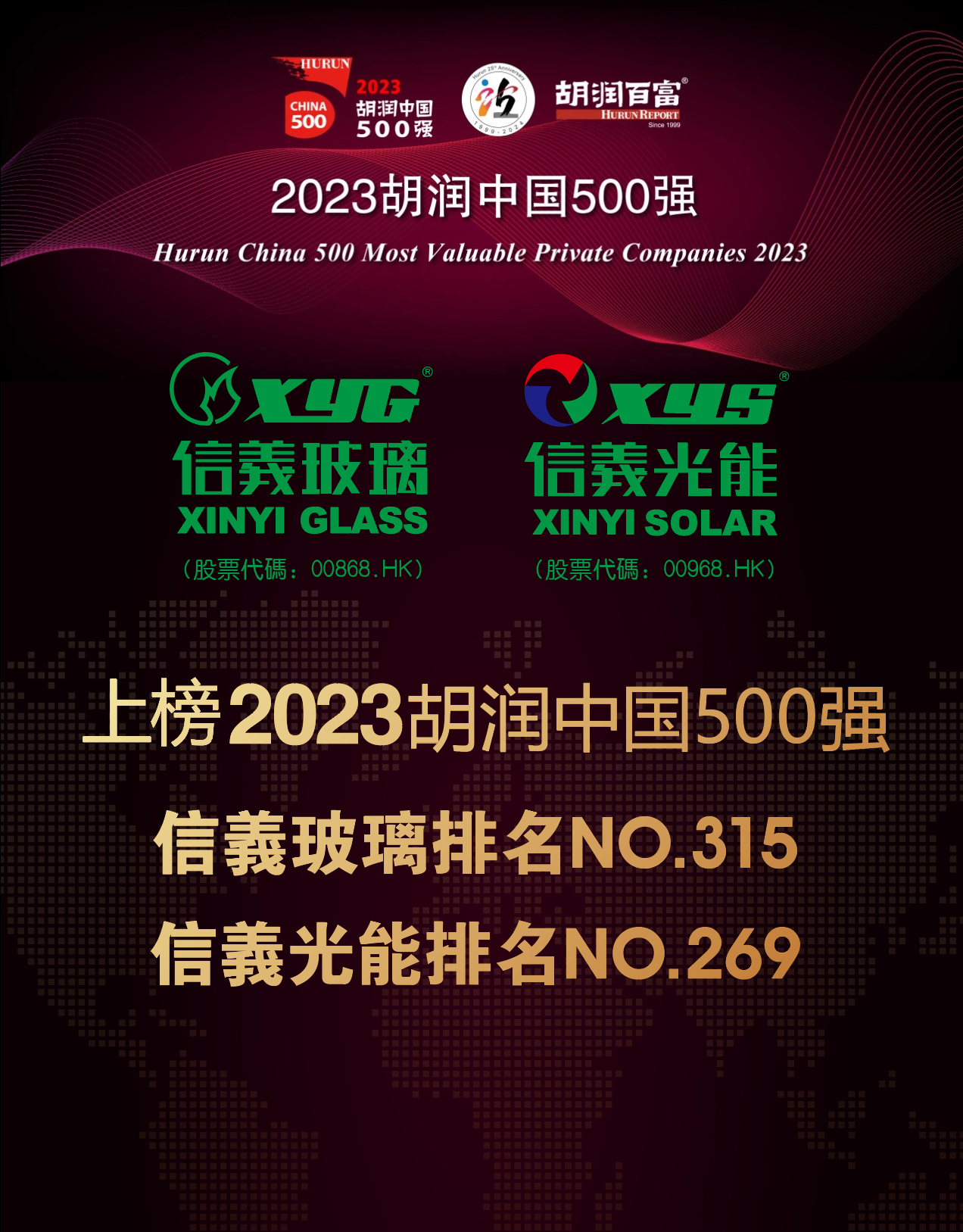 信義玻璃及信義光能双双荣登「2023 胡润中国500强」从中国制造到中国创造 信義集团以全球视野打造民族品牌