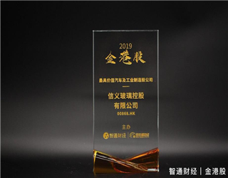 信義玻璃蟬聯「2019金港股年度頒獎盛典」—「最具價值汽車及工業製造股公司」大獎