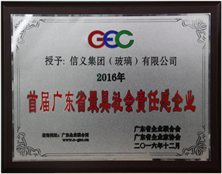 信义集团(玻璃)有限公司荣获2016“首届广东省最具社会责任感企业”称号